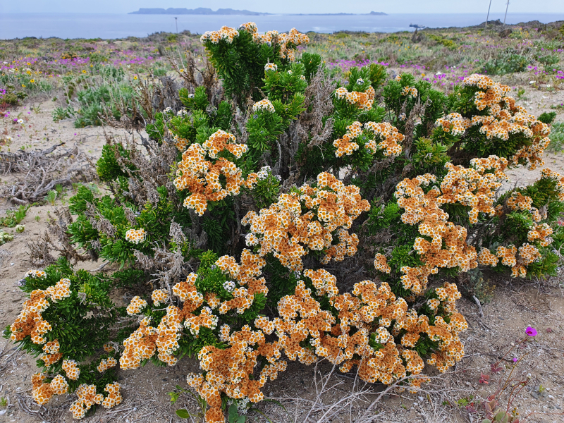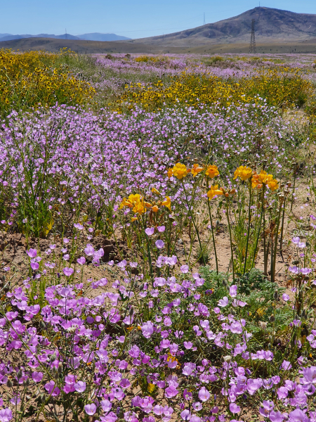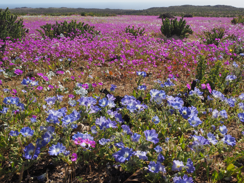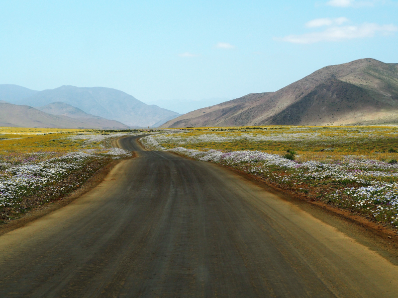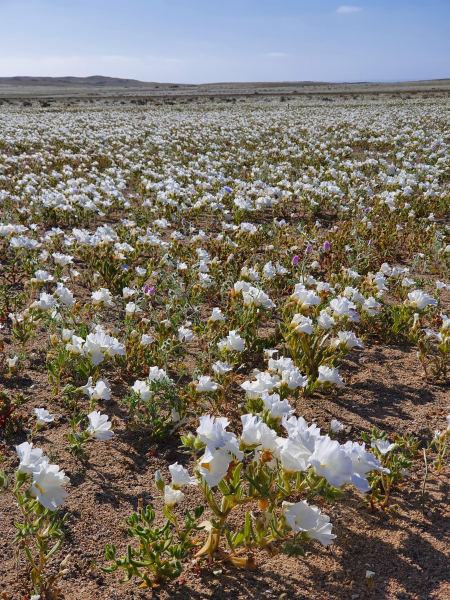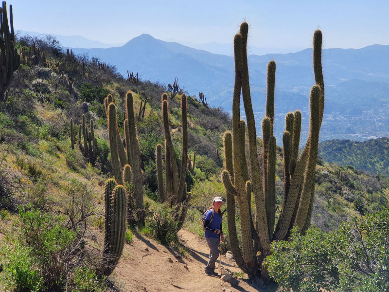 The north-south extension of Chile spans over 2600 miles (4300 km) and 39 degrees of latitude along the Pacific coast. This gives an idea of the extraordinary floristic diversity of the country. In addition, Chile’s topography rises from sea level to well over 20,000 feet (6,000 m) along the border area to Argentina. In the south is the Chilean part of Patagonia with wetland vegetation comprising cool, temperate rainforests and spectacular bogs. In the area of Santiago we find Mediterranean climate, which is subtropical with dry summers and slightly rainier winters, though much dryer than most parts of the European Mediterranean region. The farther north you go, the drier it becomes, until you finally reach the Atacama, which is known as the driest desert in the world. It begins about 120 miles (200 km) south of Copiapo and extends to the south of Peru and Bolivia. In some places, the long-term average annual precipitation is less than one millimeter.
