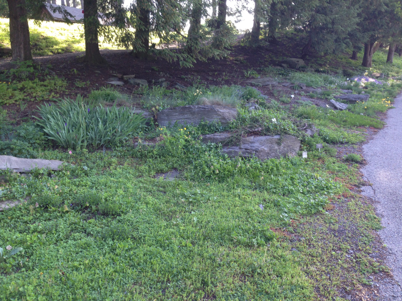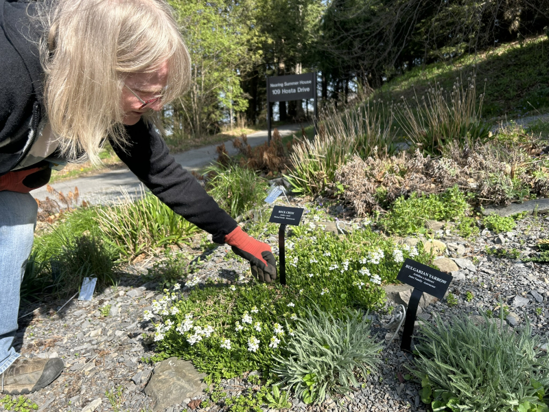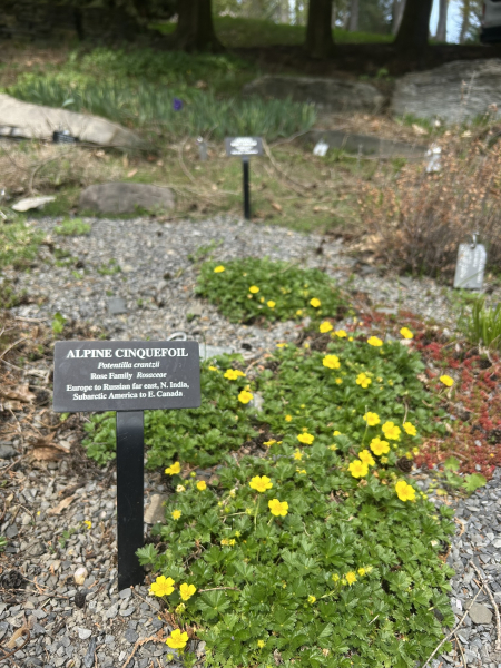 It’s mid-April, and at my feet tiny golden brushstrokes are painted atop the cheerfully lobed leaves of a Potentilla crantzii. I imagine I’m perched on a blustery ledge in the Central Highlands of Scotland, but as my gaze moves past the tiny cinquefoil I see flora of the Caucasus Mountains, the Japanese Alps, and North Africa. My armchair exploration while safely anchored at an elevation of a mere 525 feet (160 m) above sea level is made possible by the Walter C. Heasley Rock Garden at Cornell Botanic Gardens. This historically underfunded yet botanically significant garden is a portal to high places. It is a conduit for diverse narratives ranging from alpine ecology and rock gardening to climate change mitigation practices implemented by indigenous cultures around the world.