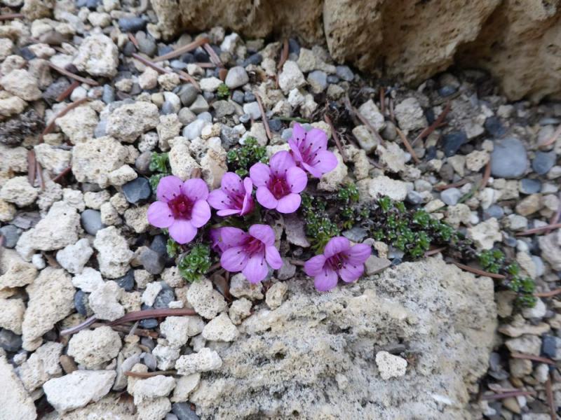 A much showier and different flower form on this Saxifraga oppositifolia (left) than the one I showed earlier (photo on the right). I believe the showier one was the division I was given by a friend from work - it will be amazing if/when the plant becomes more substantial: