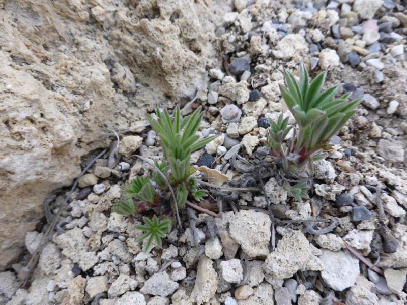 Lupinus wyethii emerging and showing an interesting growth habit - seems to have multiplied itself: