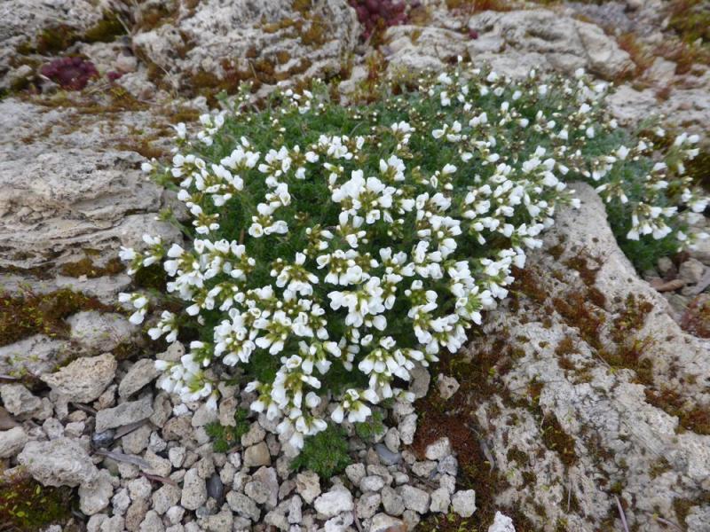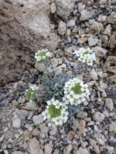 Smelowskia calycina started from seed in 2012 - seems to be blooming enthusiastically enough, given that it's a very small plant: