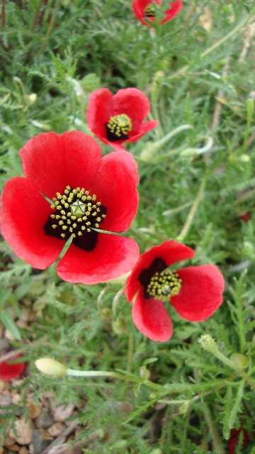 One that has impressed me enormously this spring is Roemeria refracta, a tiny poppy from the Mediterranean. It is only five or so inches tall and barely 8 inches across. It has been blooming for the better part of two months and shows no sign of stopping. It has multiplied tremendously since I first obtained it a few years ago, and is small enough and delicate enough that it doesn't seem to negatively impact its neighbors. I shall encourage it to spread more widely in my dry garden.