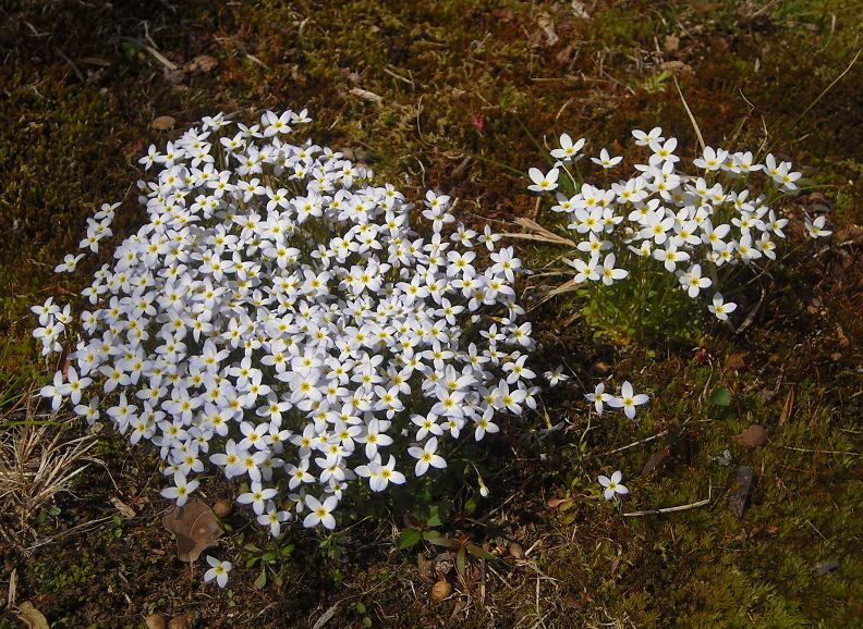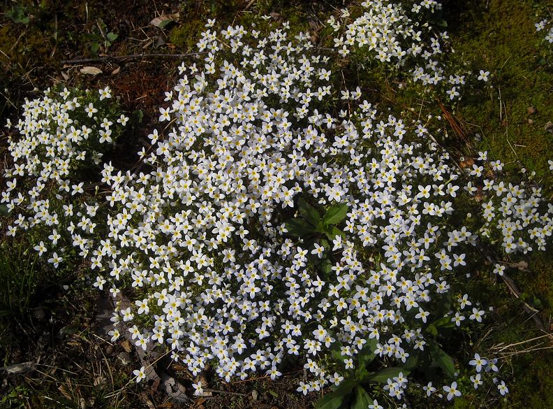 This message is a photographic essay on one of my favorite plants, Houstonia caerulea (Hedyotis caerulea), common name Bluets, a member of the Rubiaceae.