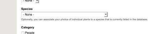 Click it to upload your photo. On the upload page, you must find the "Species" drop-down list near the bottom of the page (see image). Now select the appropriate species from this list.