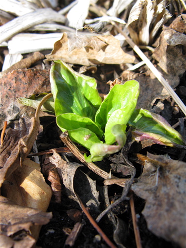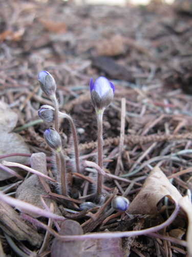 1) There will be flowers open today on the most precocious of various self-seeded Hepatica nobilis; the leaves on hepatica take quite a beating over the winter here, so it seems it is only much warmer areas that can produce those photos showing spectacular flowers and beautiful leaves at the same time!