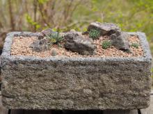 In a nutshell, a chosen form's surface is roughened in whatever fashion by physically scratching and gouging with a favorite tool, the purpose of which is to mimic natural rock or whatever is desired. The surface is heated to solidify the roughened exterior and prepare it for painting, and then painted. But let the specifics of this method be for another topic. Here I want to show some newer ideas that have emerged since Ian Young first invented the very versatile styrofoam trough concept.