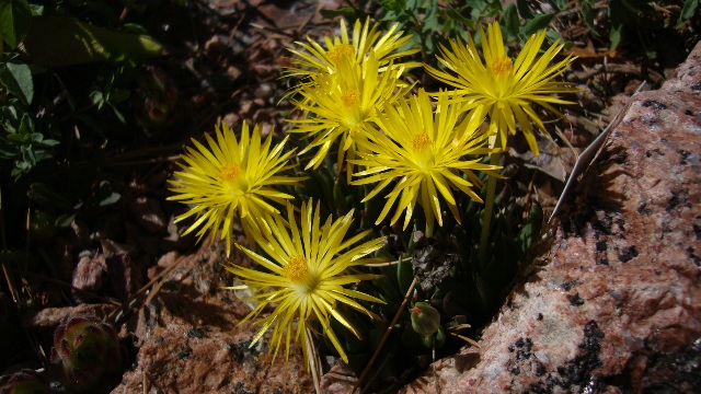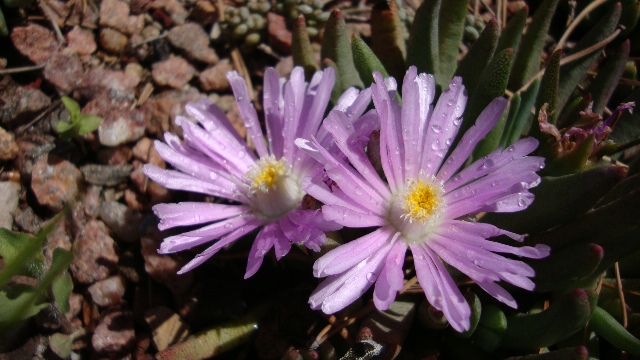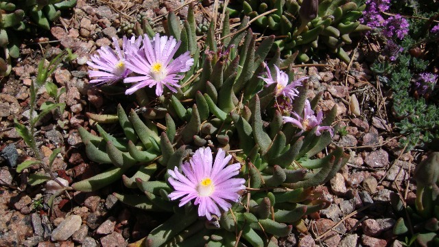 I realize ice plants aren't for everyone...but these two may have a wider appeal than you might suspect. Bergeranthus are largely from the east Cape, and I find them quite tolerant of summer water: both Bergereanthus jamesii and the second image, Ebracteola wilmanniae have been growing in my rock garden alongside drabas and saxifrages and sempervivums. They have a very long bloom period and wonderful dense habit: I actually had the Ebracteola blooming this year in December and January between snowstorms! It's been blooming for months and shows no sign of stopping. It was a gift last spring from David Salman, owner of High Country Gardens and a great connoisseur of plants (and a good man to have visit your garden: he always brings memorable gifts!)...
