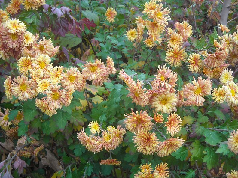 I uploaded a few photos, the first is me after a run a couple days ago, one of the few cold sunny days that reached just above the freezing point by early afternoon; man I love the cool weather. Followed by two photos of a neighbor's super-late-flowering Chrysanthemum, one that doesn't start flowering until November, undeterred by frosts, with lots of orange-yellow blooms (photos 2-3). I must ask my neighbor for a piece; the "mum" has been a stalwart last-bloomer in her garden for the 22 years that I've been here. And photo 4, shows a view of my garden from the street... as I run a 1.25 mile loop around the neighborhood, I do visual botanizing and garden assessment while running; I like the look of the slow-burn of fall color on my epimedium plants as I run by repeatedly.