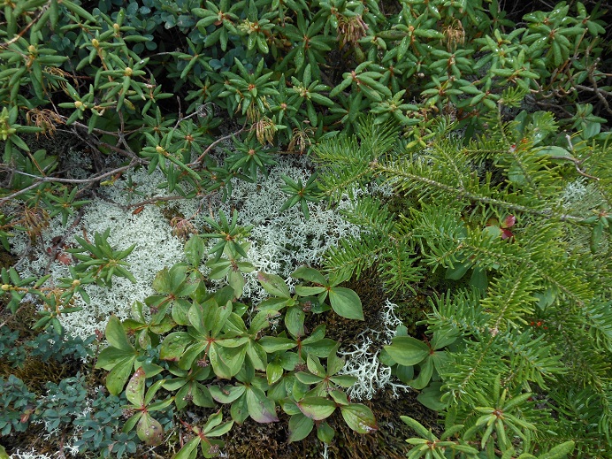 Sun, 08/19/2012 - 7:27amMinuartia groenlandica is the most common, arguably the only, small cushion plant on Dix. A few still had flowers in August. The second photo of miniature garden including Ledum groenlandicum and Cornus canadensis.