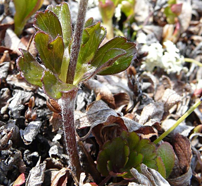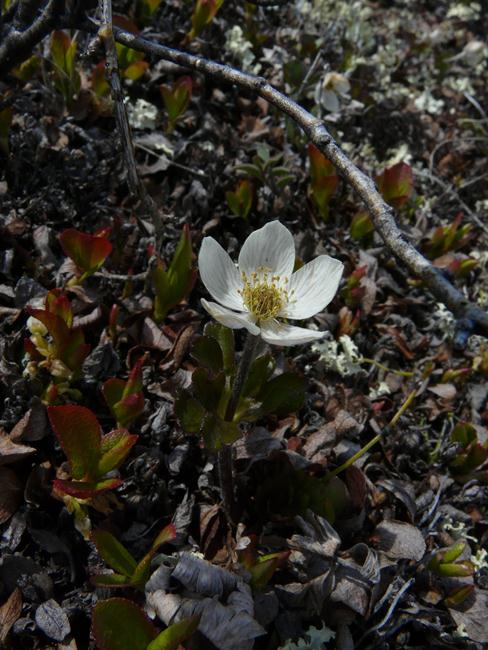 Thu, 06/23/2011 - 9:22pmOkay, so here are some more shots of the Anemone from nearby at the Columbia Icefield site-- a bit farther up slope, in an older plant community, still growing in Arctostaphylos rubra.. looking at them now, I see most of the emerging leaves do look quite rounded, and not linear divisions as I thought they were--good thing the camera records better than I remembered ;)
