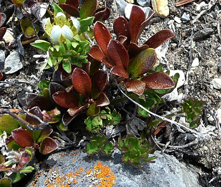 Just slightly upslope seems to have been longer out of the ice as there is a full surface coverage of plants, including lichens not seen below, and lots of grasses, as well as most of the species seen below..The effect was a beautiful patchwork, even without significant flowering...