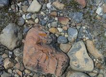 We arrive at the Columbia Icefield, where the attraction is the glacier, with a massive tourist centre across the road (hotel, restaurants, gift shop, I think, I've never gone in, way too busy even on this weekday in late May (though doubtless much less busy than peak days), a trail that leads up to the glacier's edge ( the trail is kind of fun, great views, great rocks, and of course interesting to see the early colonising plants close to the glacier), but my interest is farther back, in among and on the moraines left behind by the gradual retreat of the glacier..