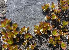 The most conspicuous plant at this time was Arctostaphylos (Arctous) rubra visible for some distance on the nearly bare gravel (some things not yet leafed out, or barely emerging)...