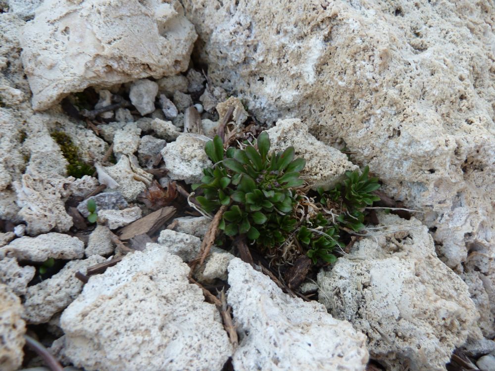 Draba sp.; Eritrichium pauciflorum ssp. sajanense (x2) were crammed into little crevices in the tufa as seedlings and seem to have adapted: