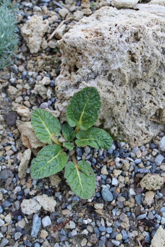 Rheum delavayi, 9cm across; started from seed in 2012; seeds collected by Holubec in 2008 in China, Beima Shan, Yunnan, 4800m, slate scree: