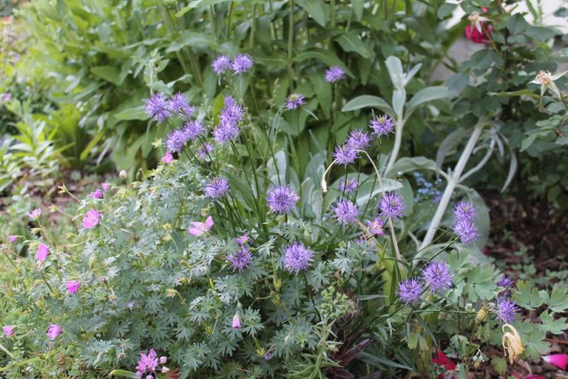 Your plantings are looking terrific!  Very attractive foliage on those species, and I find the flowers quite interesting too.  The flower close-ups on the first two remind me of the flower structure of Carduncellus pinnatus.   I hope you will more post photos of S. aff superba when the flowers are fully open.