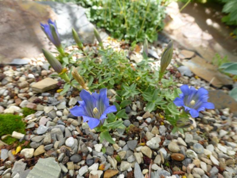 Gentiana siphonantha - my other specimen in bloom; rock garden view - Acantholimon kotschyi ssp. laxispicatum will be blooming very heavily in a while; Monardella odoratissima var. odoratissima;  Arenaria hookeri ssp. desertorum: