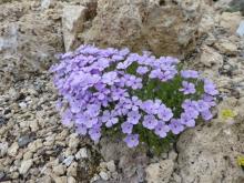 Lupinus lepidus v. utahensis, starting to bloom; Primula scotica still blooming; Aethionema saxatilis v. oreophila again: