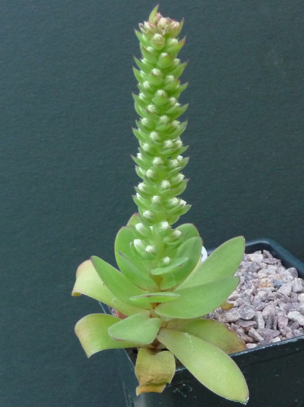 After seen Orostachys iwarenge again in Lori's and Michael's gardens, I am even more suspect of the identity of a seedling of same grown from the NARGS seed ex this year. And the bugger even decided to flower the first season! Any suggestions?
