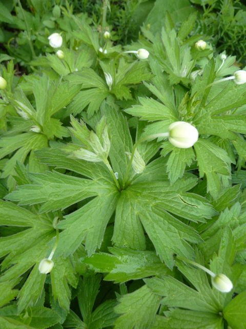 Also, for comparison, here is our locally native Anemone canadensis, with leaves a bit broader yet (rampantly spreading also):