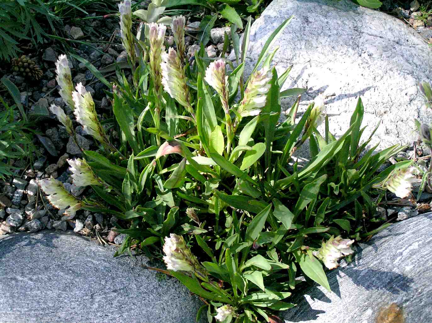 "Snowlover" is starting a modest bloom, started from Alplains seed last year, collected in Colorado... oddly pinched-mouth little flowers.