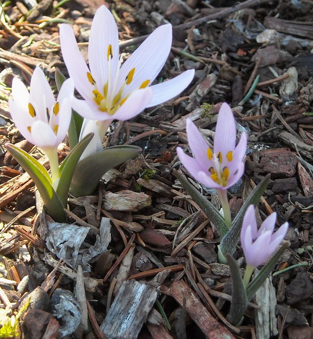 Today (Easter Sunday) it was sunny and warm, and the bulbs are starting to pop into bloom, including Colchicum doerfleri (with either two forms, or perhaps two species, both sent to me a number of years ago as C. doerfleri).