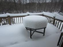Snow on my deck from the snowstorm last week, the dining table becomes a snow donut, a good gauge of snow depth. Taken last Tuesday, March 19th, it continued to snow all day, totally 16" (40 cm).