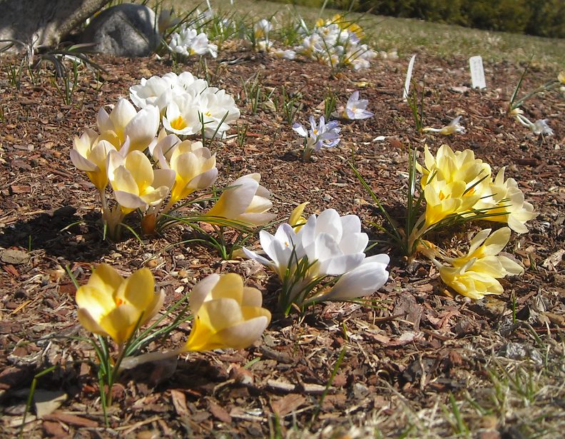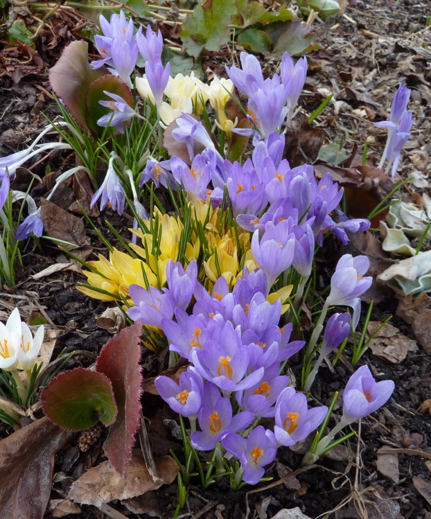 And some jolly mixes of various cultivars of C. chrysanthus, C. biflorus, C. tommasinianus and C. vernus: