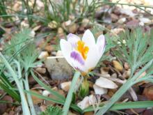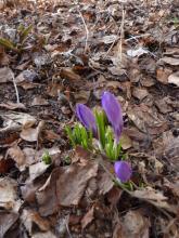 After two absurdly warm days (near 70 F, 21 C) sunny weather continues but now only in the lower 40s F (~6 C) yet the sun is still warm, and the spring bulbs are literally jumping out of the ground.  Here are some welcome spring crocus.