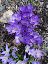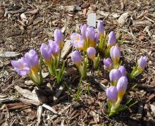 My first crocus are somewhat open.  Most are still under snow but the one bed that is melted responded to the cool sun today.  Crocus tommasinianus , C. t. Ruby Giant, C. t. 'Lilac Beauty/