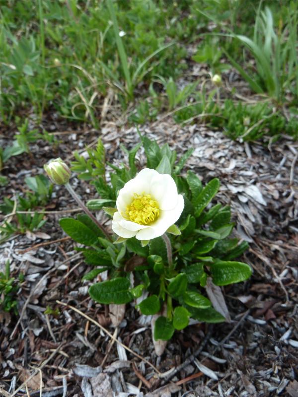 Here is what I believe to be D integrifolia (I'll find more pics of this too- just a quick first post before work today) at a site beside Abraham Lake, in the Kootenay Plains region. The plains are considered montane, and are not at a very high altitude- roughly 1100 to maybe 1300 m. This particular site is at the foot of a mountain which reaches down to the man-made lake, and while again not very high, has some alpine plants not seen on the plains generally- presumably the plants are also growing higher up on these mountains, and are able to colonise this lower habitat in open exposed rocky areas.