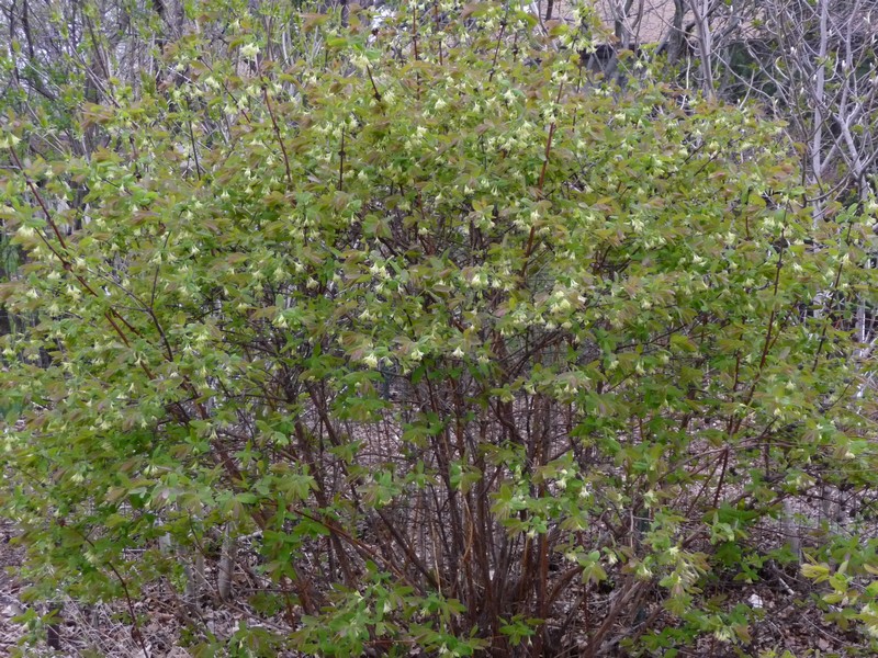 Dirca palustris (Atlantic Leatherwood) is supposed to be difficult to transplant, protesting any root disturbance.  It certainly did when I received it as a smaller plant that originally came from one of our original Minnesota native plant enthusiasts, May Wright.  I transplanted this shrub last spring.  Root pruned the previous year, it has done very well, although flowers are noticeably smaller.  This one has been bloom for 2 weeks so far, and is on it's way out.