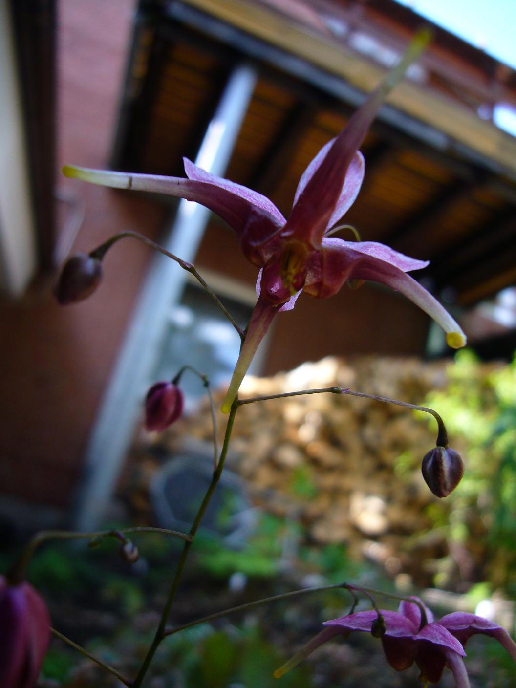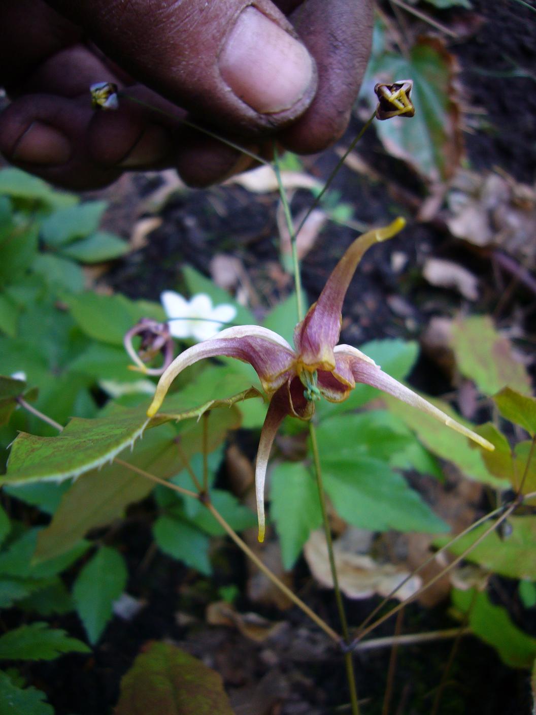 2. Epimedium x omeiense 'Myriad Years'. Long stems, hanging down.