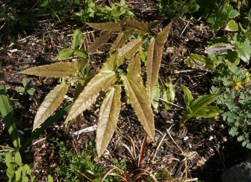 Sun, 04/27/2014 - 2:03pmThe first epimedium in flower this year. An unnamed plant with strange flowers (are they fully opened yet? Have to look again tomorrow.