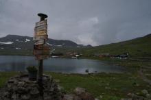 A one day walk from the railway station Finse to Geiteryggen crossing a ridge at about 1600m altitude. We arrived by train in the evening, spent the night at the cabin there ( http://finsehytta.turistforeningen.no/cabin.php?ca_id=31&fo_id=5362&lang=eng ) and started walking early next morning arriving at Geiteryggen ( http://geiterygghytta.turistforeningen.no/cabin.php?ca_id=35&fo_id=5219&lang=eng ) where we had our cars some hours later.