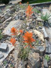 Among the many paintbrush spp., propagated and planted with Townsendia "hosts", Castilleja integra(?):