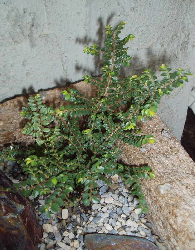 Siskiyou Nursery, when it was run by Baldassare Mineo, carried several of these Ulmus parvifolias, from the tiny to the one I bought, which was supposed to be 7' after 10 years. I bought three and planted them, not knowing if they would be hardy. I'll try and find the pictures. They turned out to be irresistable to the antlered rats and two of them are bonsais as a result. They are the two planted farthest from the house. The one in a raised bed right next to the house is a nice size now and apparently hardy. It took the deer some years to start in on it and they changed the shape forever. It's probably 8' or 9' now. The one drawback to this lovely thing is that the density of the branches makes it very susceptible to damage from late ice storms.
