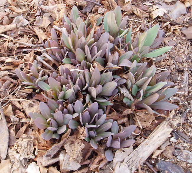 The emerging foliage is a gorgeous dusky purple-green, as shown in this older photo (the foliage was barely breaking the ground on the most precocious plant last weekend, before the latest snow). Here are also photos of it in bloom.