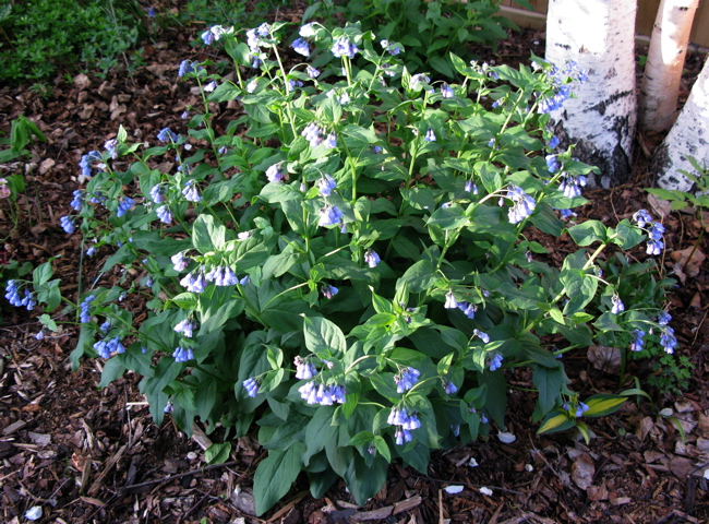 Mertensia virginica (Virginia Bluebells) is fairly common among shade gardeners here, although fairly difficult to find in nurseries. It is well loved, and though it is native in Minnesota, it is only abundant in the very southeast portion of the state. Some gardeners find it a bit weedy, but easy to control, while most are delighted with the gentle self seeding. Two State parks are especially famous for their natural ephemeral wildflowers, and each have quarter acre areas of mostly Virginia bluebells, with Erythronium spp., Enemion (Isopyrum) biternatum, Thalictrum spp., Asarum canadense, Uvularia grandiflora, etc. They are truly a sight to see.