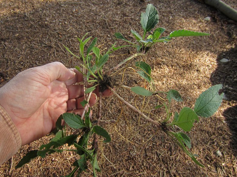 I was surprised just how robust the roots were, and with seemingly modest growth above, the roots were tenacious and made for difficult uprooting. I was also surprised at how thick the stolons are. The rate of spread is about 6" per (in all directions) per season. Here's a photo showing an uprooted piece.