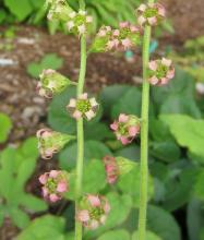 Wed, 05/29/2013 - 6:09pmA quietly attractive plant for a woodland setting is Tellima grandiflora (Fringecups) from Western North America. Mine came to me misidentified as Boykinia rotundifolia (that species is from California). The flowers start out green but age pink. To 18" tall.