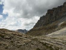 Approaching the headwall, Hector Lake in the distance: