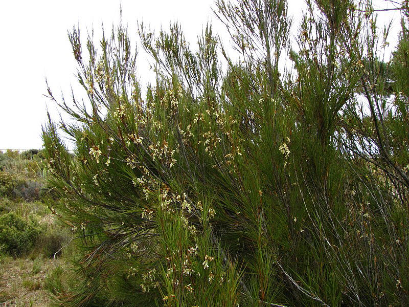 Finally --a little heath like plant growing amongst sedges lichen and leaf litter, Leucopogon fraseri.