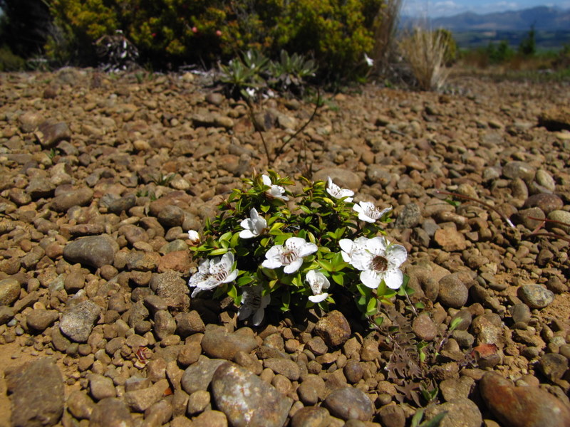 Also on the ridgeline large mats of Kelleria dieffenbachii and Hectorella caespitosa and surprizingly in open positions Ourisa caespitosa