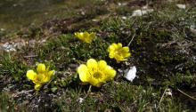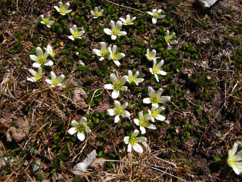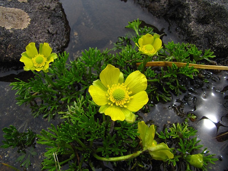Further on up towards the saddle in wet seepages, Ranunculus sericophyllus.
