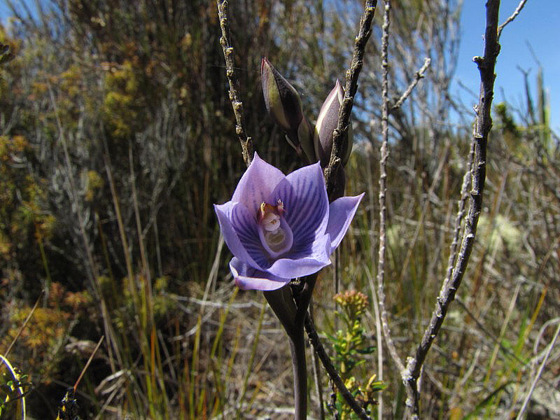 The sun orchids ,(Thelymitra pulchella), prefer sun ,however will also open their flowers on a heavily overcast warm day.