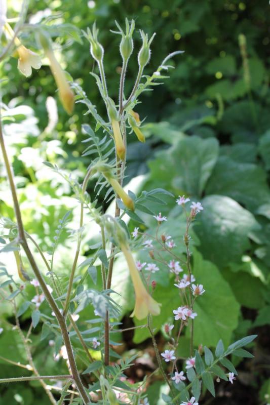 Grown from seed obtained from the SRGC Seed Ex and sown in January last here's ex Polemonium pauciflorum 'Sulphur Trumpets'. I planted out a group of five seedlings that have made a fine, if a little overlarge, clump. I was a little disappointed by the paucity(!) of flowers to the proportion of leaves but I have to say that up close the flowers are beautiful.