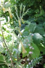 Thu, 08/22/2013 - 8:14pmOne of my old favourites, David. They tend to be much less leafy in my garden than the very attractive and full plants you show. I would guess that might be related to the dry conditions here. (As well, I have no idea if 'Sulphur Trumpets' may possibly have been selected for particular attributes besides the contrasting colour on the flower tube, e.g. bushiness?)