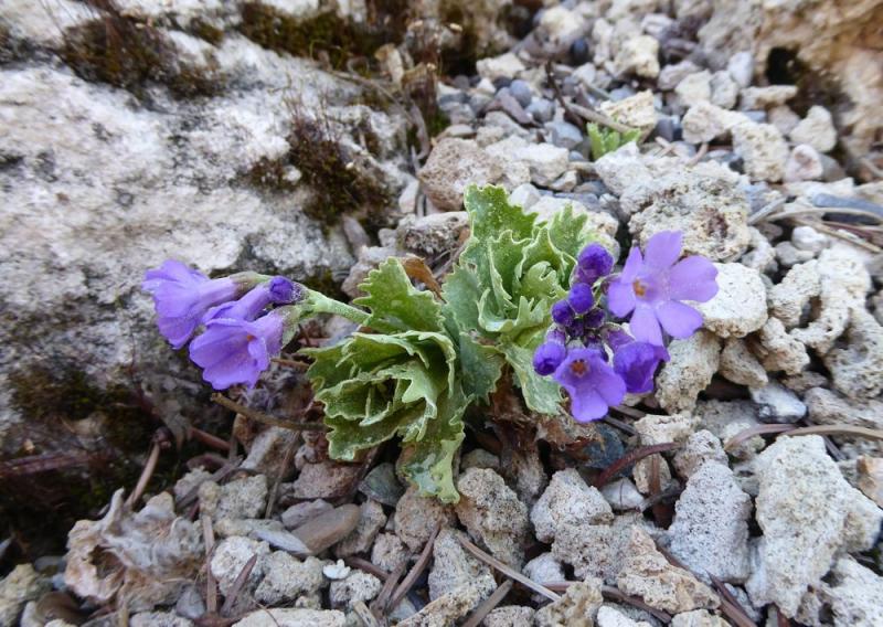 Primula algida and P. marginata (a young one) were the earliest; P. algida again in a more mature stage: