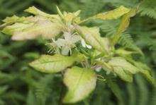 Another cross I got as a small seedling. The leaves are huge and although the trusses seems small they are not! The plant is 3-4m tall now and still fast growing.